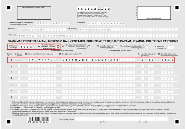 E3 laukelis (Mokesčio dalies paskirtis) – Lietuvos Skautijai