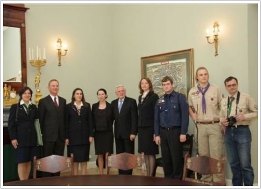 Foto: LS delegacija įteikia skauto vyčio lazdą LR Prezidentui broliui Valdui Adamkui, 2009 m.